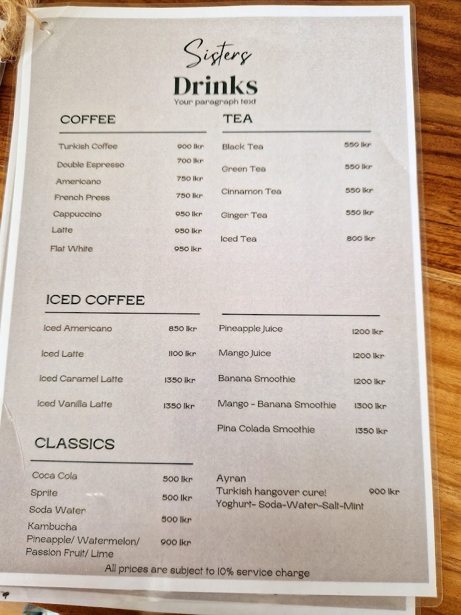 Introducing the menu at Sisters Kabalana, a charming café nestled by the serene Kabalana Beach in Sri Lanka, is like uncovering a treasure of flavors. This delightful spot, run by two passionate sisters, offers a warm and inviting atmosphere that feels truly homely. Customers rave about the vibrant and colorful breakfast options, making mornings feel bright and refreshing. The Turkish breakfast is a standout, featuring freshly baked simit and açma, creating an exceptional culinary experience that delights the senses.